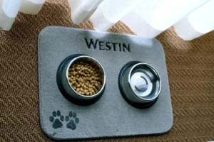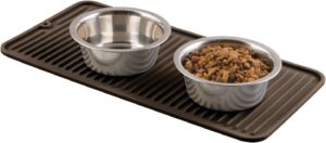 Investing in a good food mat is necessary for your dog’s upkeep. It prevents any possible harm to your floor by the food bowls. Furthermore, it helps deter any possible mess when your dog begins to play in his/her water bowl. Hence, preventing the floor from becoming wet. These mats are raised along their edges to contain spills from the bowls, and they’re easy to clean, due to their stain-resistant nature.