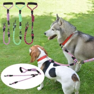 A leash is among the essential dog products because it allows you to have full control of your pet. However, all leashes aren’t the same. Leashes with double handles and an additional loop next to the ones at their end are preferred. Because the second loop enables you to have the dog close to you. This specific leash, is of heavy-duty nylon, with two handles, two loops, a reflective stitch for night walking, and is six feet long.