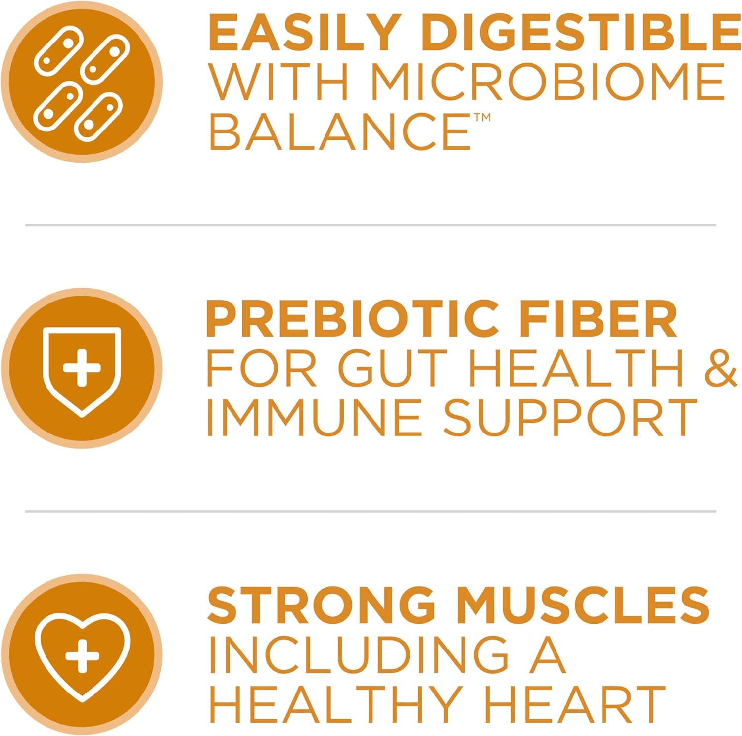 - Purina ONE chicken and rice dog food offers a microbiome balance and a SmartBlend of high-quality ingredients, including prebiotic fiber for dogs, to help your pal be his best self
