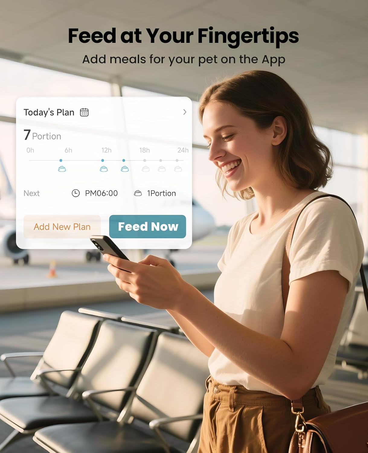 - Smart App Control: Program up to 10 daily meals (1-12 portions each) remotely via 2.4GHz WiFi from anywhere at any time. Monitor your pet’s feeding patterns through the iOS/Android app to prevent overeating and maintain healthy eating habits