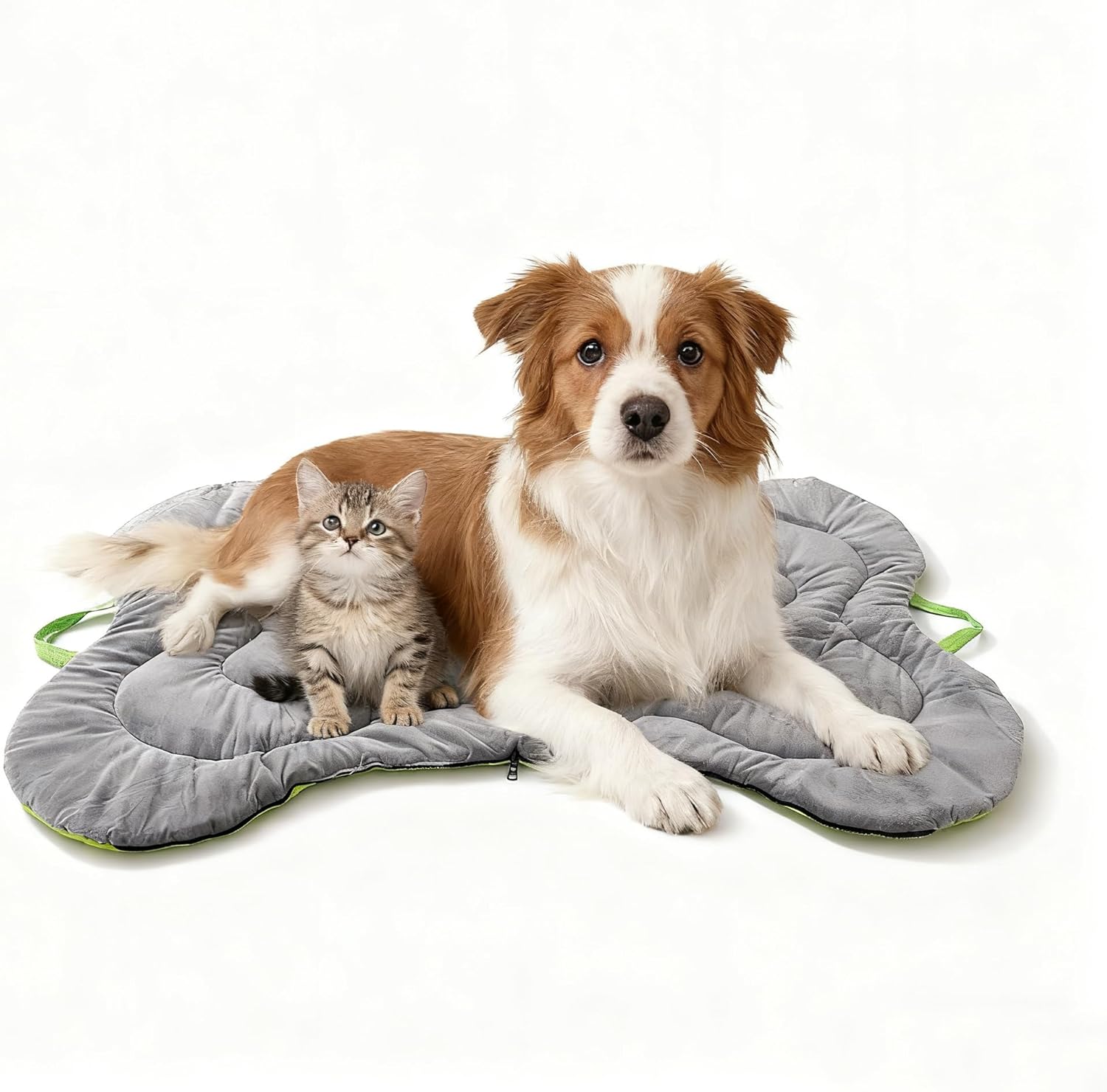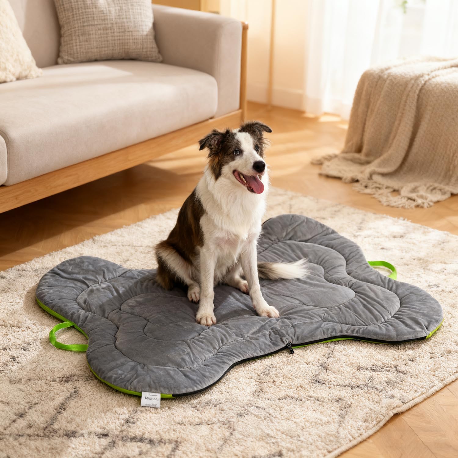 DWCN Doul-use Portable Dog Bed Mat with Handle, All Season Available Washable Dog Crate Sleeping Pad for Medium to Large Dogs, Pet Supplies Carry Bag for Outdoor/Car, 47 x 32 Inches, Grey