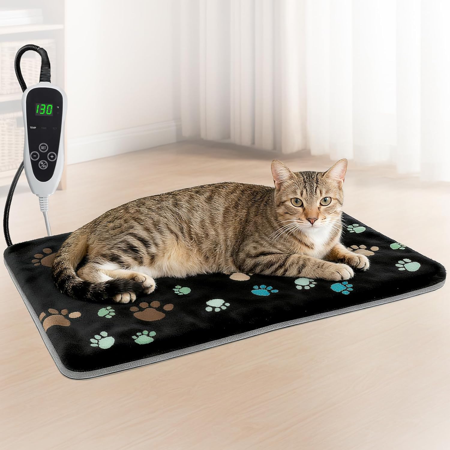 Extra Large Dog Heating Pad 47×30 in with Smart Thermostat Switch and Power Line Protection Tube,Obtained MET and UL Dual Certification,Waterproof Pet Heating Pad for Dogs-Black