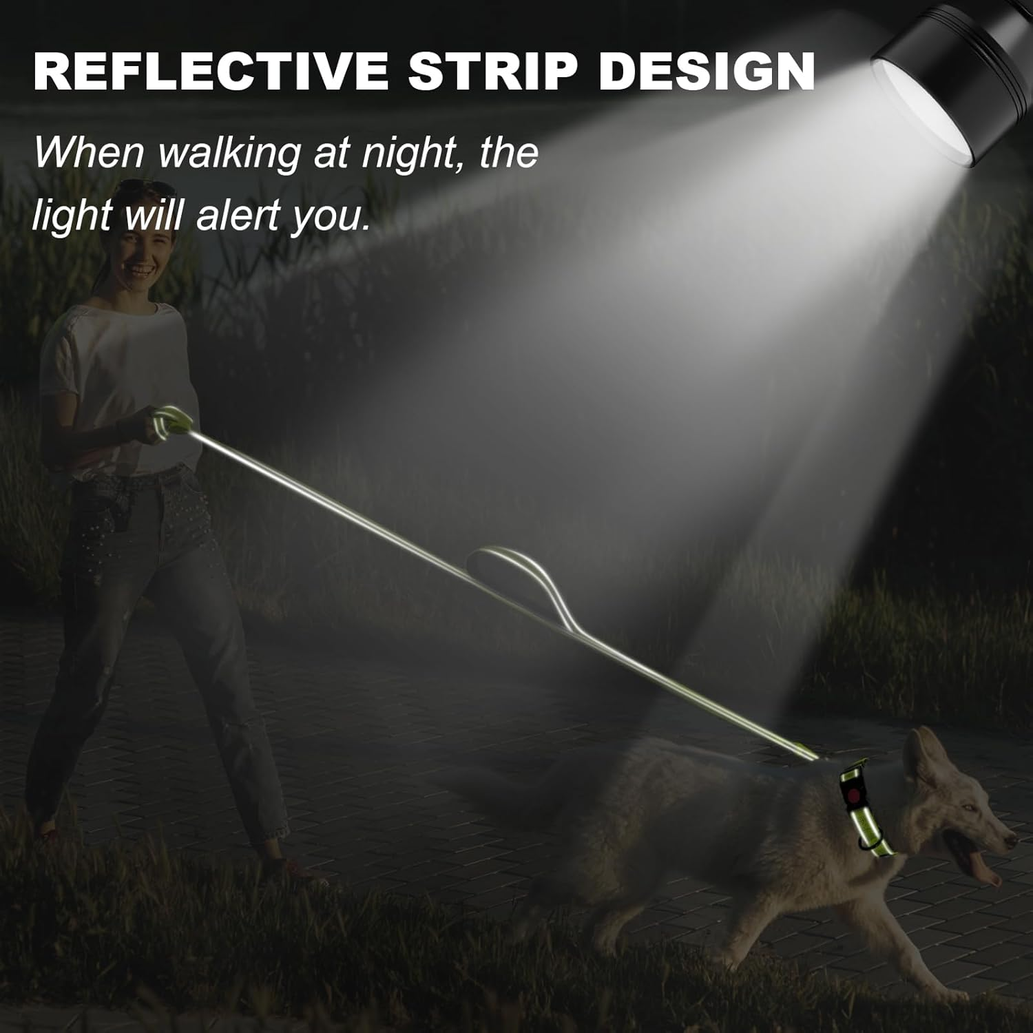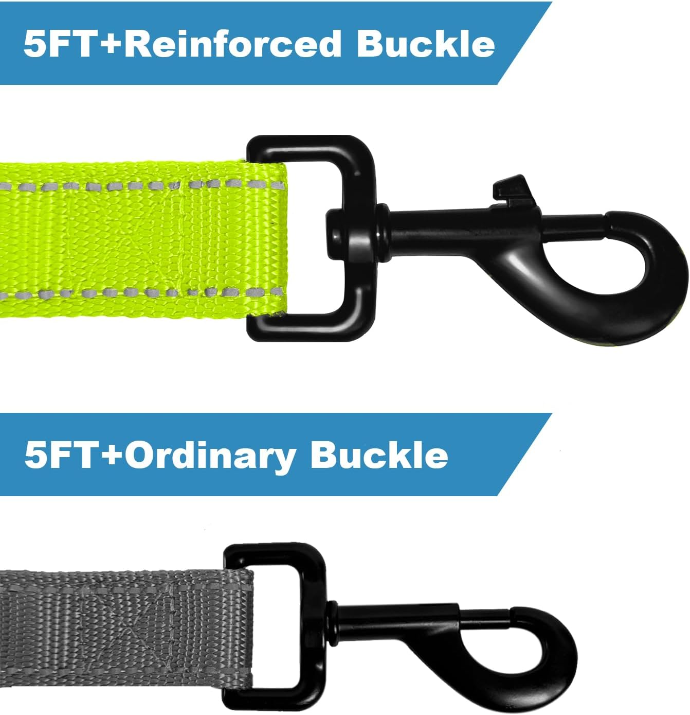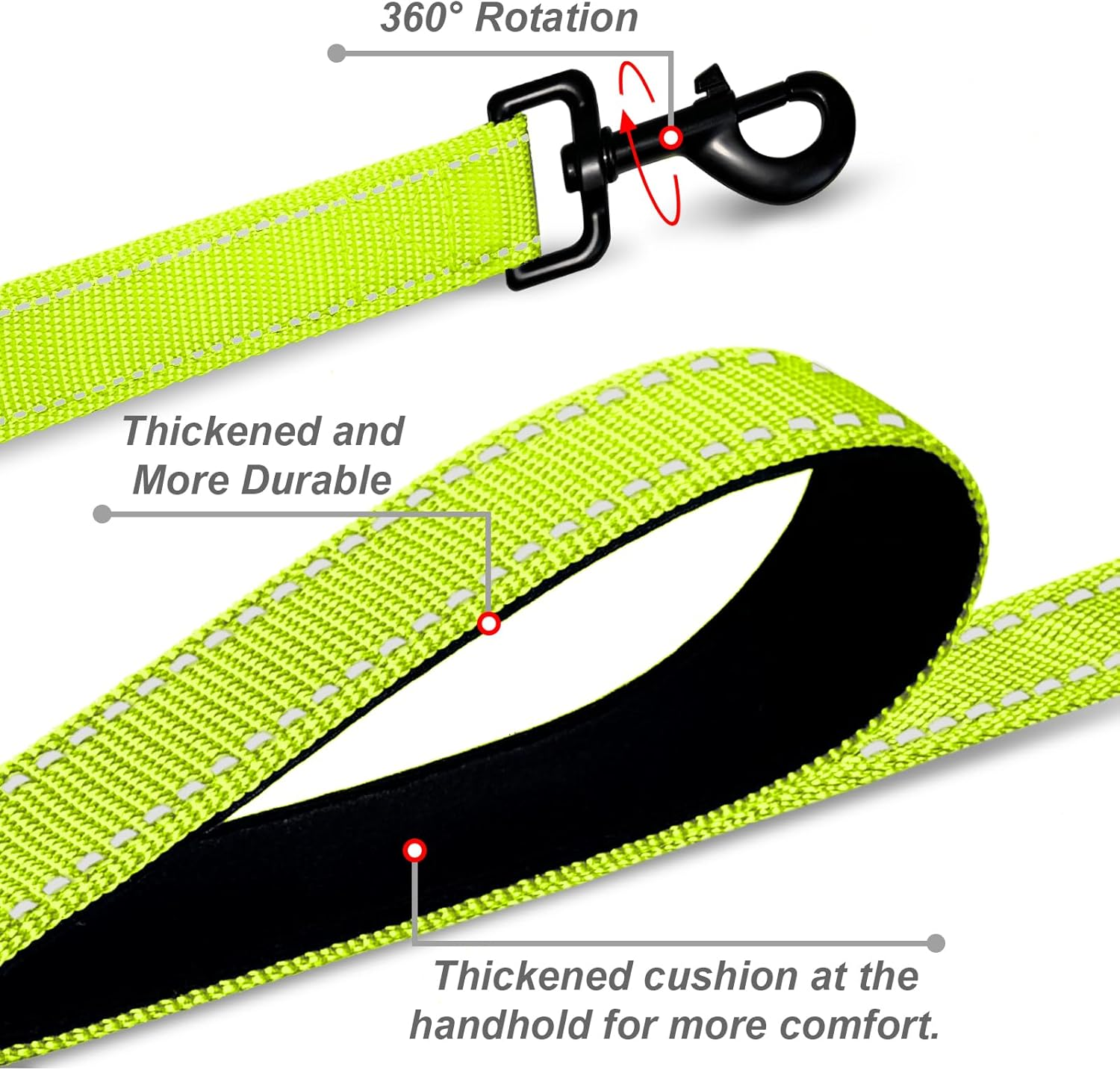 - [Double-Sided Reflective]: Upgraded double-sided reflective leash features reflective stitching on both sides to improve its visibility and would be reflective when lights shine on it at night. Can keep your doggie safe during evening walks or runs.