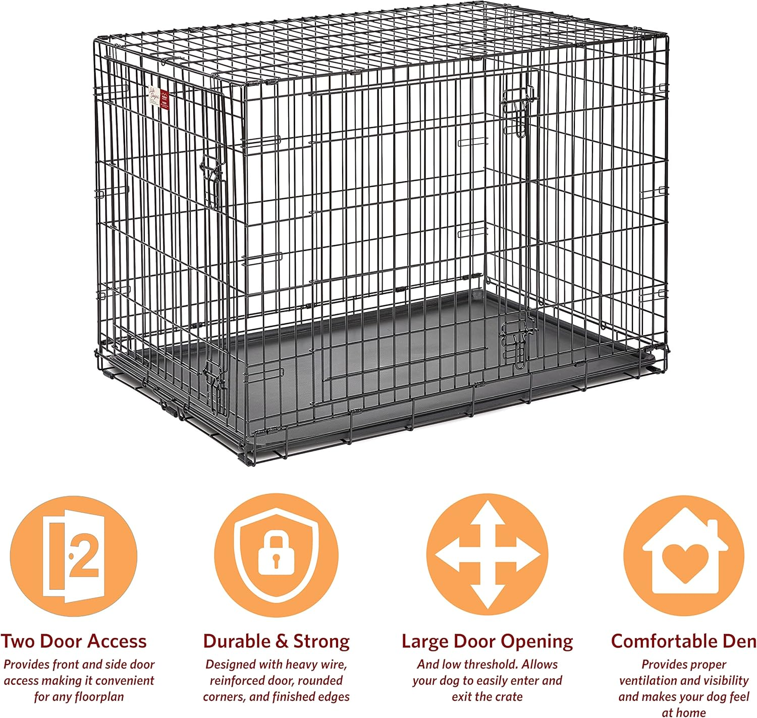 Large Lifestages Double Door 42-Inch Folding Dog Crate, Enhanced Security, Includes Leak-Proof Pan, Divider Panel, Handle, Rubber Feet