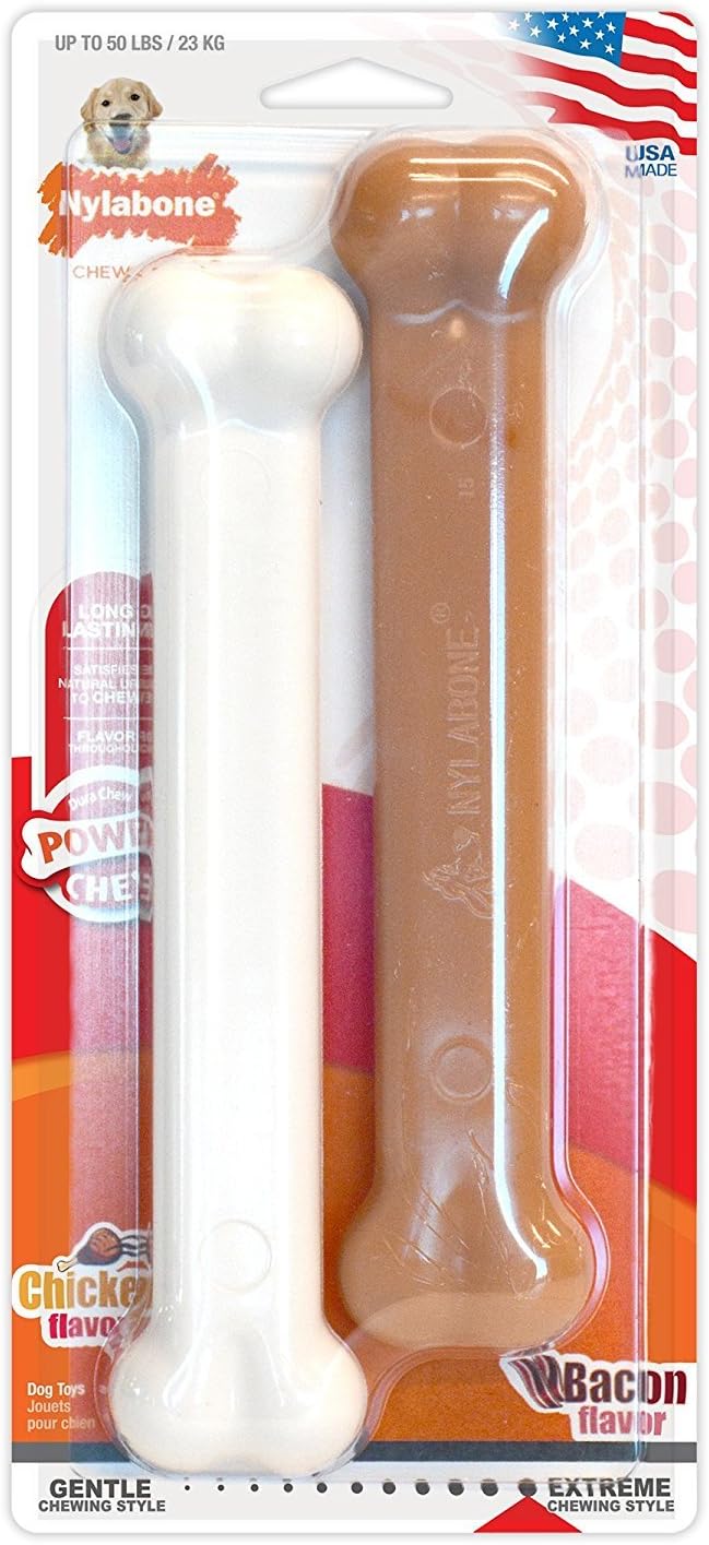 Nylabone Original Bone Power Chew Toy for Dogs, Durable Dog Toys for Aggressive Chewers, Basted Blast Chicken Flavor, Large – Up to 50 lbs, 2 Pack