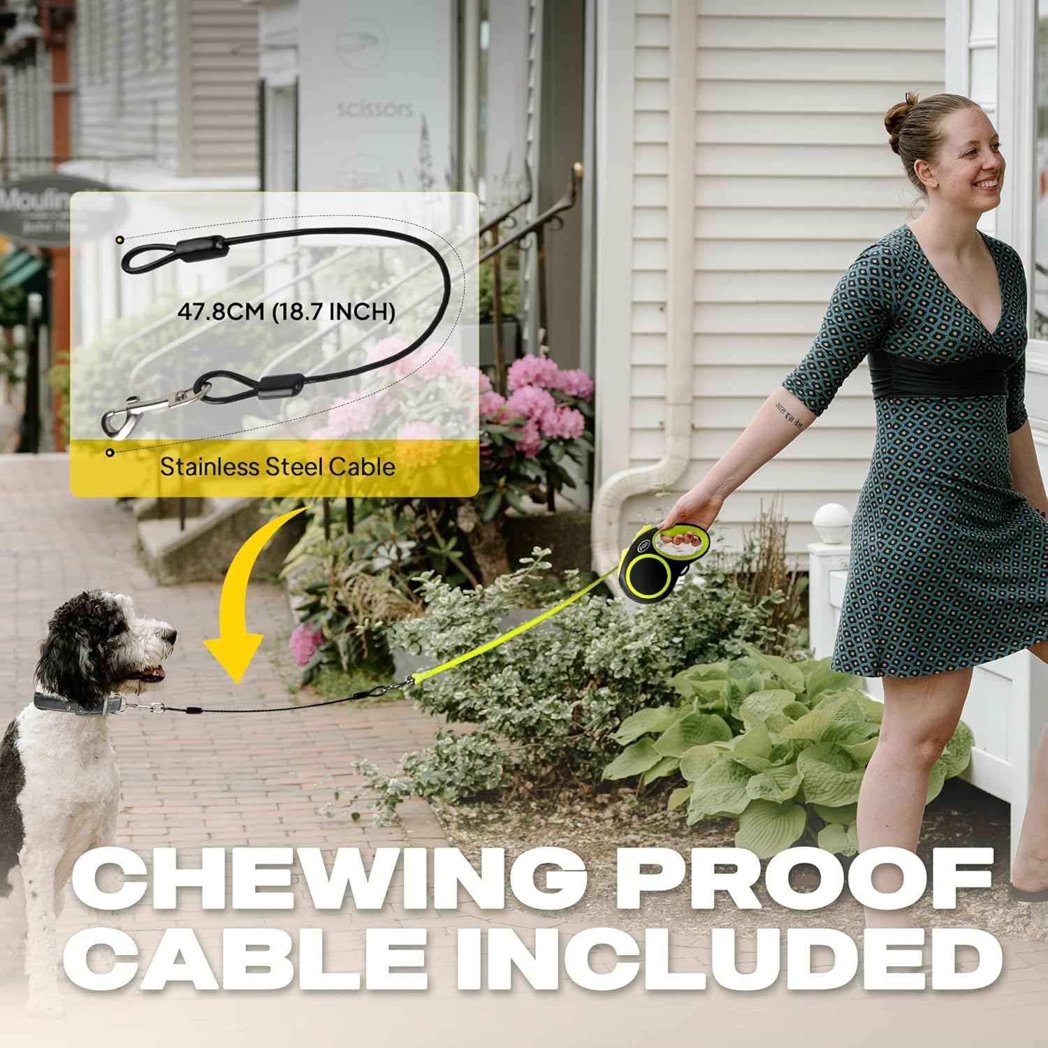 - 【Safe Reflective Dog Leash with Chewing Proof Cable】: Safety is our priority! This reflective retractable dog leash with reflective stitching and stickers enhances visibility in low-light conditions, keeping both you and your precious pup safe during evening walks or outdoor adventures. Additionally, the chewing-proof cable provides free added durability and resilience against teething puppies or chew-happy dogs.