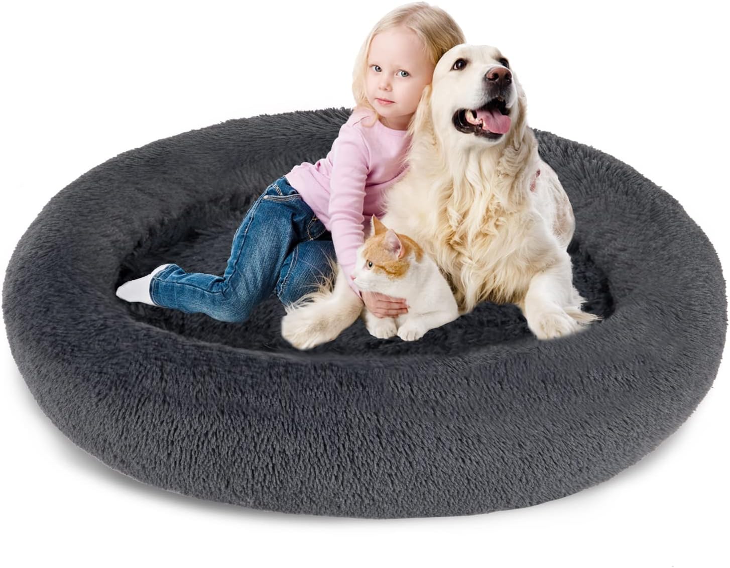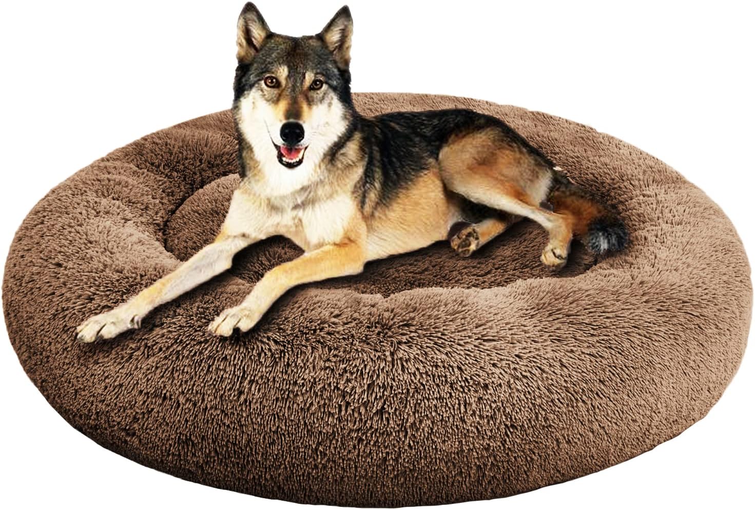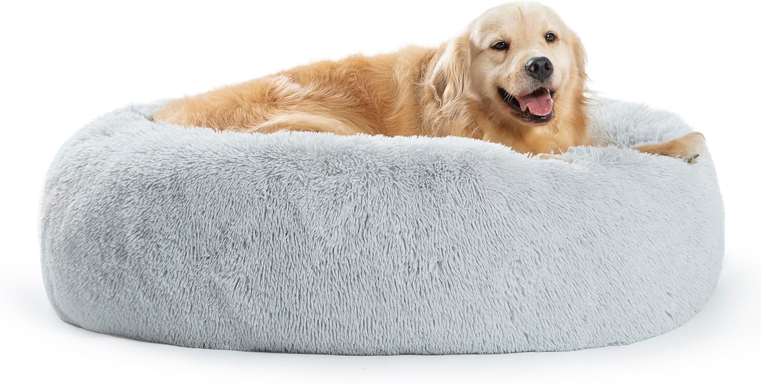 SAVFOX Plush Calming Dog Beds, Donut Dog Bed for Small Dogs, Medium, Large & X-Large, Comfy Cuddler Dog Bed and Cat Bed in Faux Fur, Washable Dog Bed, Multiple Sizes XS-XXL