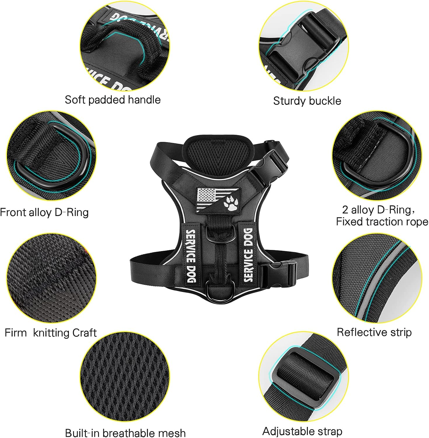 - 【Reflective Dog Harness】- The reflective tape of the Damigreat dog harness can reflect ambient light in extreme low light conditions, so as to ensure that your dog can stay visible even when walking or running at night, and comes with 2 service dog patches, 2 in training patches and 1 dog paw patch.