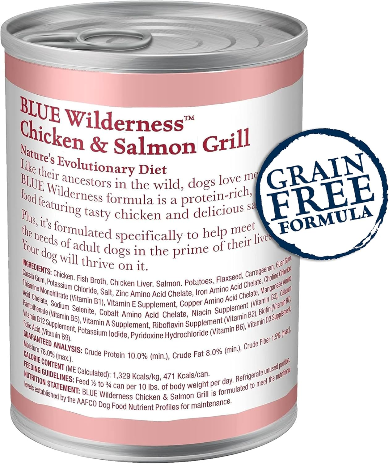 - Contains Twelve (12) 12.5-oz cans of BLUE Wilderness High Protein Natural Adult Wet Dog Food plus Wholesome Grains, Salmon & Chicken Grill