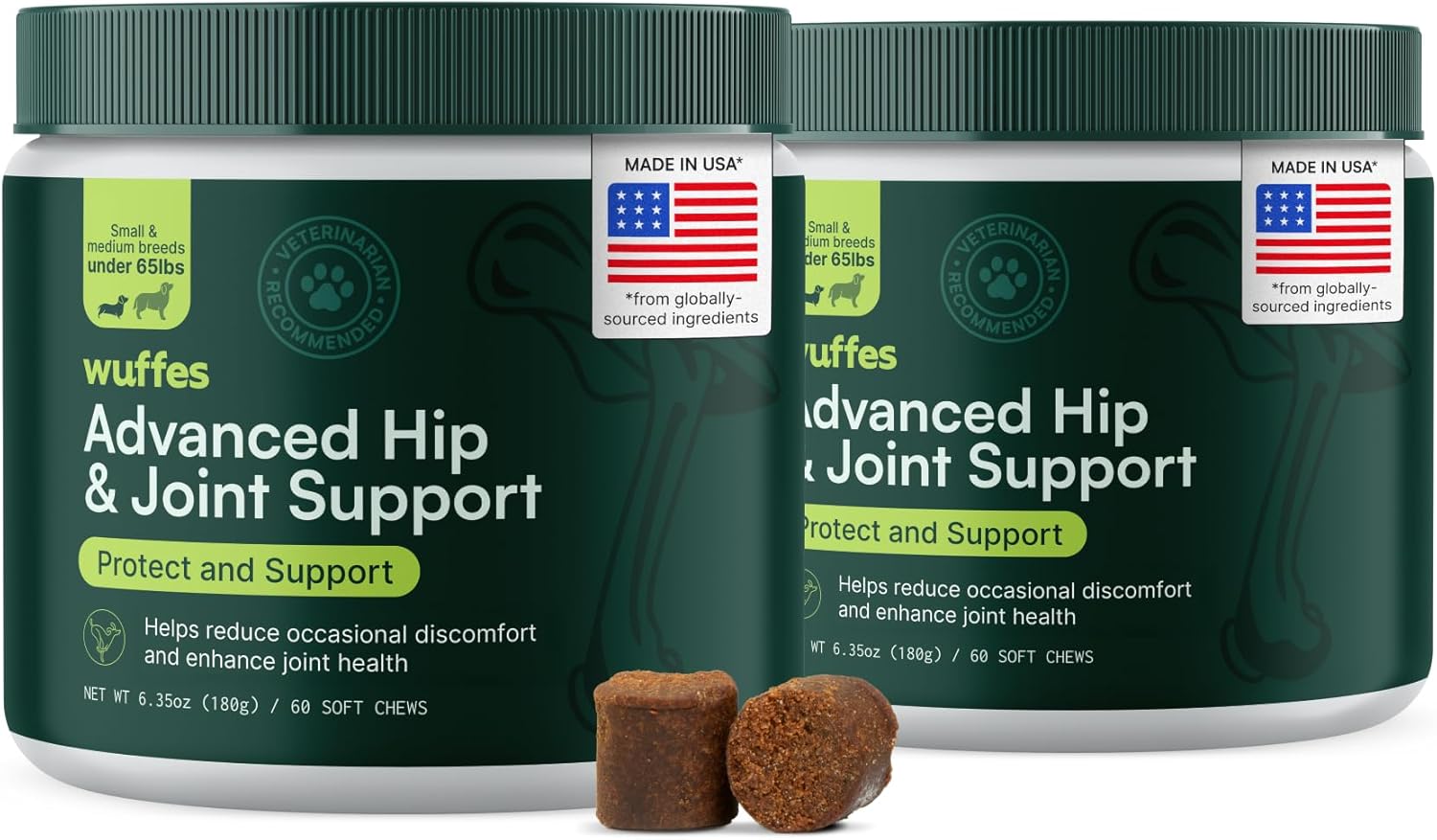 Wuffes Advanced Dog Hip and Joint Supplement with Glucosamine, Chondroitin, Omega 3, MSM, and Green Lipped Mussel, 30 Pork Flavored Chews for Large Dog Breeds